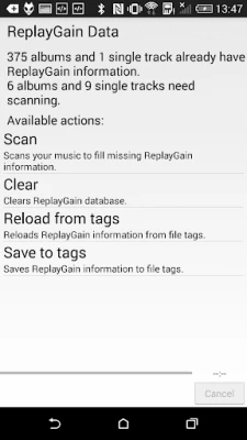 Main features: * Supported audio formats: MP3, MP4, AAC, Vorbis, Opus, FLAC, WavPack, WAV, AIFF, Musepack. * Gapless playback. * Full ReplayGain support (playback and scanning). * Supports playback and downloading music from various network servers (UPnP, FTP, WebDAV).