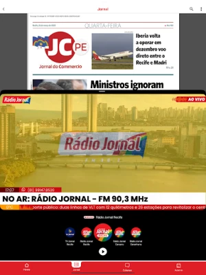 Com ele o assinante do JC tem acesso às últimas notícias de Pernambuco, do Brasil e do mundo. Por ele também é possível ver a versão impressa do jornal e baixar as páginas publicadas, além de edições anteriores.