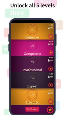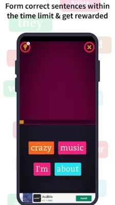 The game consists of putting the scrambled words from each level in order to form a correct sentence and learn English in a fun way. (Beginner, skilled, professional, expert, sayings.)
