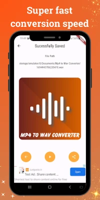 Our app is designed with your convenience in mind. With a sleek, user-friendly interface, Mp4 to Wav Converter offers a seamless experience for all users. You'll be amazed by its lightning-fast conversion speed and the superior quality of the resulting audio files.